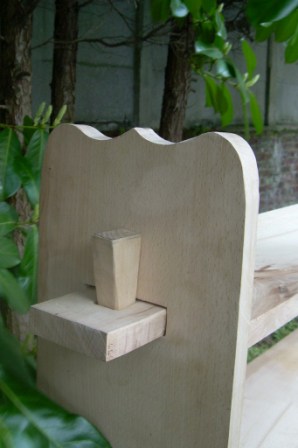 Etagère en hêtre démontable pour plus de commodité de transport. Assez lourde pour rester stable (planche de 2.5cm d'épaisseur). Pas de sources.