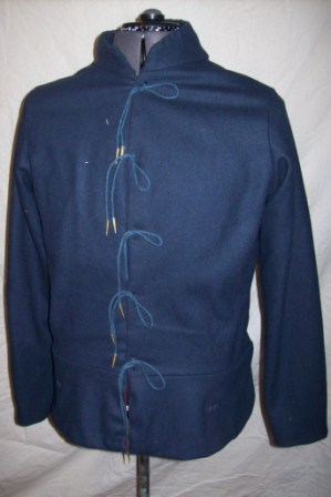 Pourpoint à maheutres, fermeture frontale par boutons, ici en étain. Deux aiguillettes de chaque cotés ferment le bas de la manche. Oeillets dans le bas du pourpoint pour fixer les chausses (emplacement et nombre à définir)